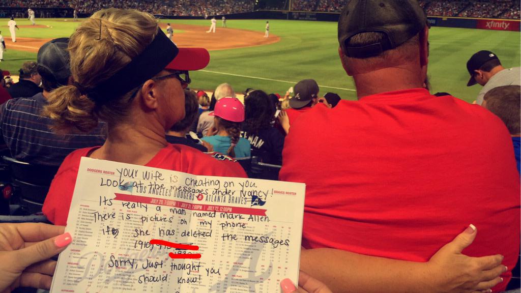 They even wrote everything down on a piece of paper and gave it to the woman's husband after the game.Â