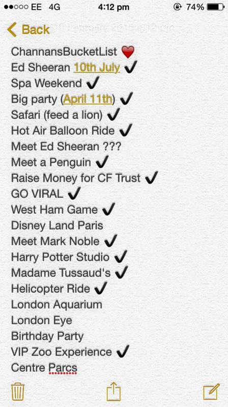 Initially as you can see, meeting Ed had some question marks next to it but now she can officially tick that off after meeting him at one of his Wembley gigs.