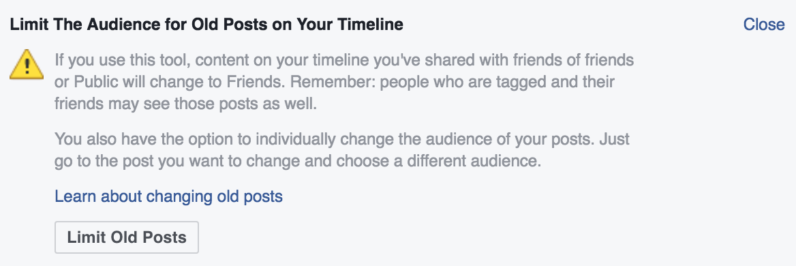 3. You’ll then get a warning pop-up asking if you really wanna do this; click on ‘Limit Old Posts’ to change your old posts to ‘Just Friends’ or just you!