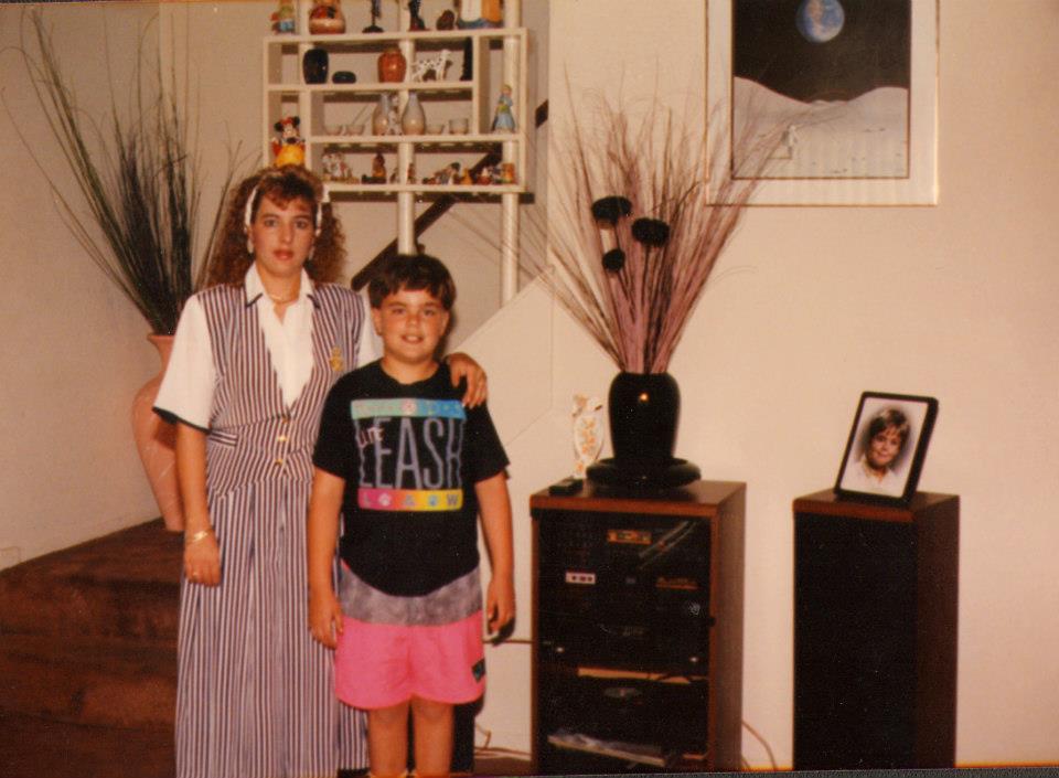 "So a few years back I was digging through old family photos at my mom's house and I came across this magical gem from sometime around 1990. Â That is yours truly rockin' the pink shorts around age 9 and that is my mom. Â This photo was taken in our old living room. Â Now, there was some major family drama regrading this specific photo because I swore to my mom, grandma, aunt, etc that the painting you see hanging in the background of this photo was of an astronaut taking a piss on the moon. Â My mother however refused the claim arguing she would never in a million years have been so ghetto as to have a painting of an astronaut pissing on the moon hanging in her living room. Â I argued the claim for 45 minutes but was outnumbered by the loud-ass South American women in my family who accused me of nothing more than trolling. Â I however stood firm by my claim, trusting my memory wasn't betraying me. Â This whole thing has since become a running joke on me, all of them ganging up on me to rub it in my face that I would think something so stupid and argue them over it...oh how I fucking wanted a copy of this painting to prove them wrong!"