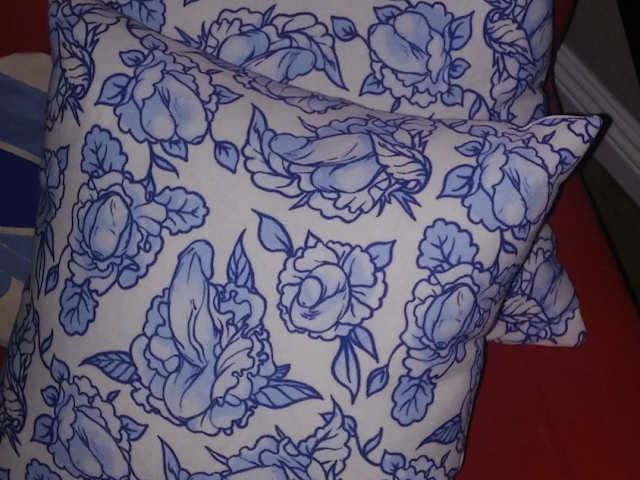 Reddit user Waffle_Tw*** couldn't resist sharing a photo of her Mother's cushions, with what appeared to be a blue floral pattern.