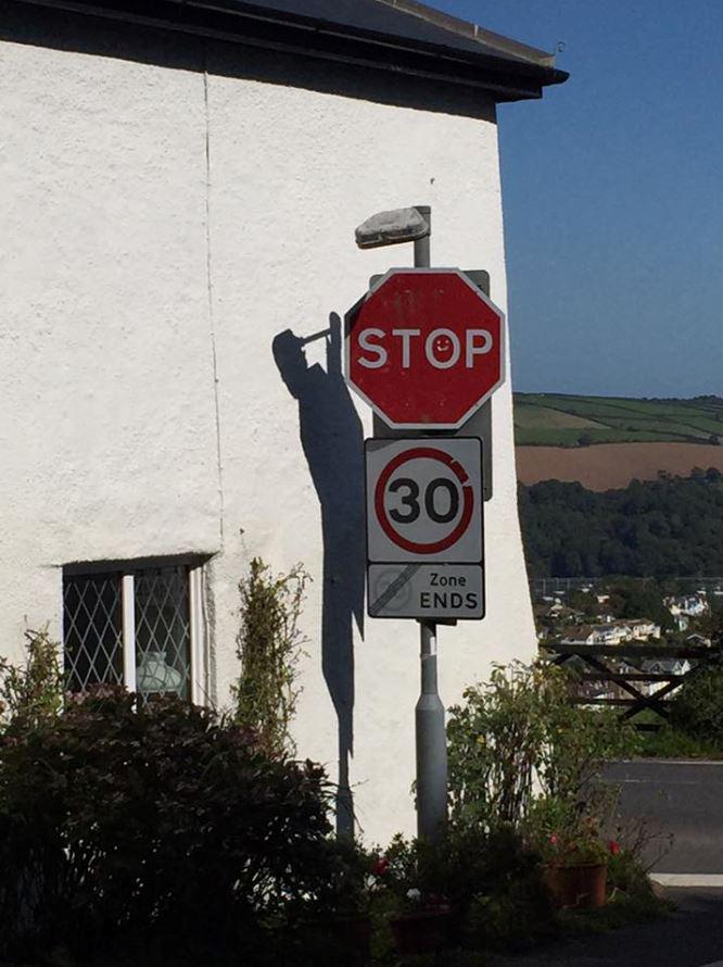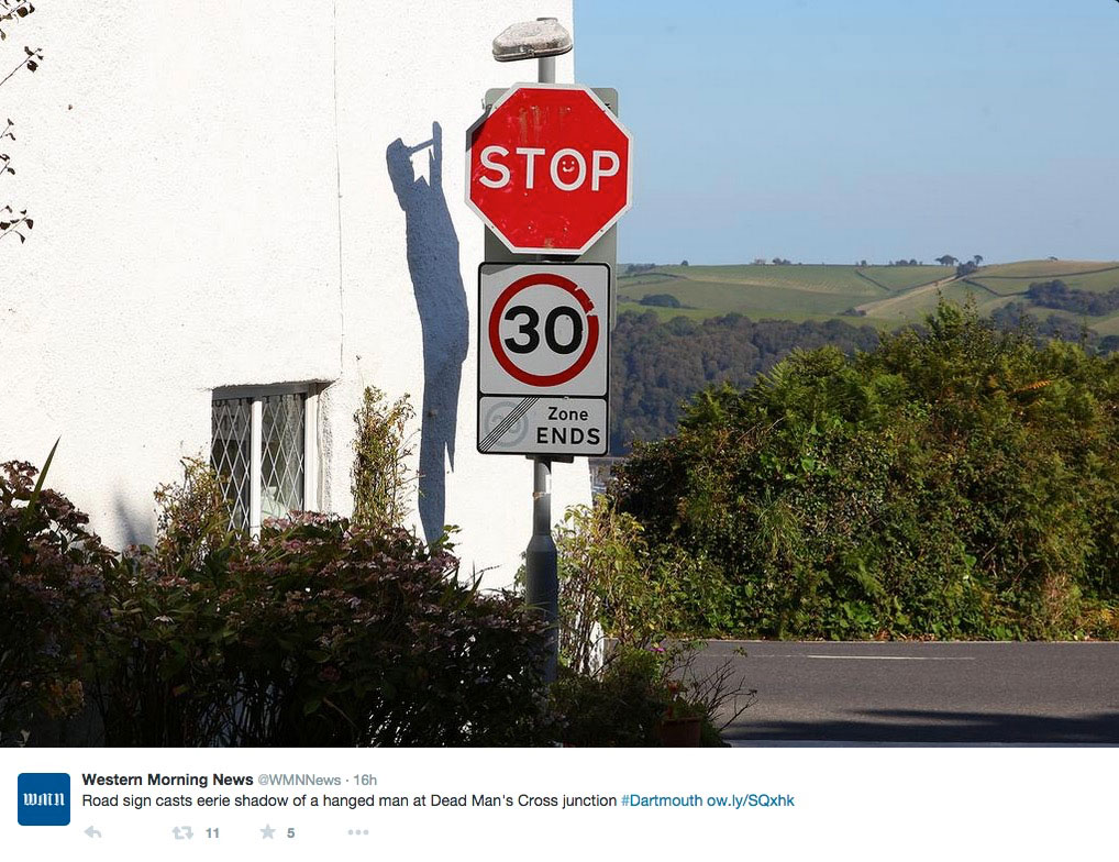A photograph from a British town Dartmouth has gone viral because of the freaky shadow this seemingly innocent sign casts.