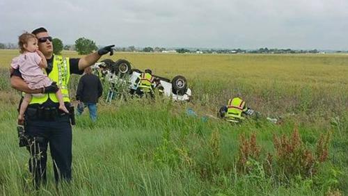 Photo of Police Officer Comforting Little Girl After An Accident Which Killed Her Father Goes Viral