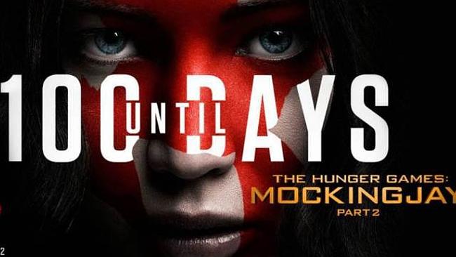 A poster advertising the final film in the hugely popular movie franchise was released last week featuring Lawrence’s face with the words “100 days until The Hunger Games: Mockingjay Part Two”.