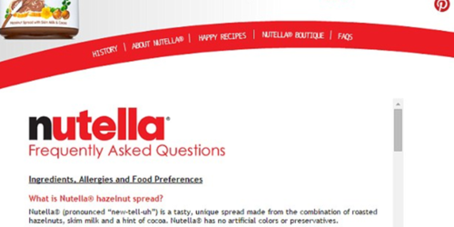 The revelation was made on the official Nutella website in the Frequently Asked Questions section.